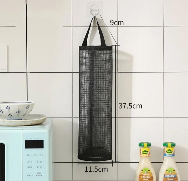 В отличие от шкафчика, этот девайс позволяет держать пакеты на виду, в емкости, подвешенной на стене. Во-первых, это быстрый доступ к пакетам. Во-вторых – значительная экономия кухонного пространства. В-третьих, взяв несколько органайзеров, можно эффективно разделить шарики по размеру и типу, например большие и маленькие или обычные и для замороженных продуктов. Это удобно? Конечно! Органайзер для пакетов в кухне имеет продуманную конструкцию. Сетчатое дно со специальным отверстием, через которое можно вытаскивать пакеты.