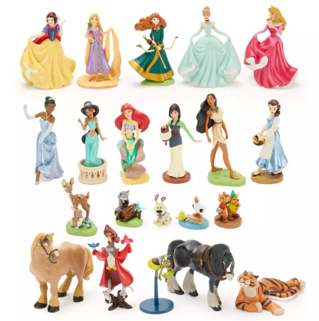В набор входят 20 детально проработанных фигурок: 11 принцесс в красивых костюмах и 9 их друзей — любимые персонажи из классических мультфильмов Disney.