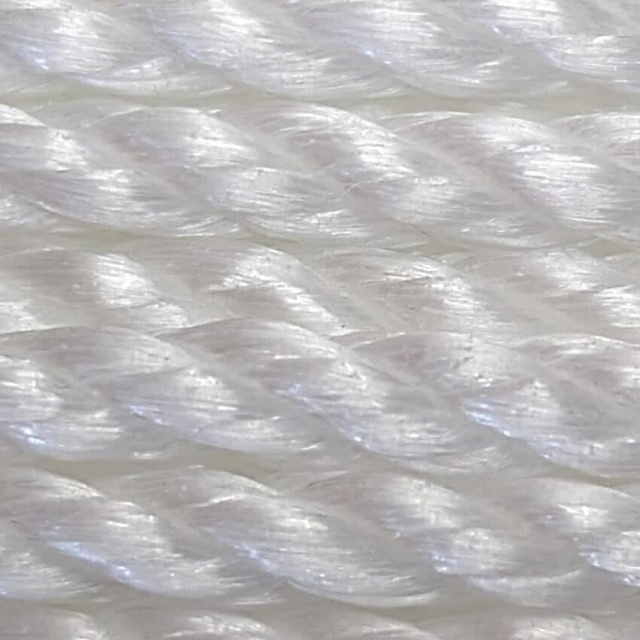 Канат полипропиленовый – изготавливается из прочных синтетических волокон, с ультрафиолетовым стабилизатором. Материал устойчив к изгибам, прочен и не тонет в воде. Кроме этого полипропилен не гниет, не подвержен воздействию морской воды и химических реагентов. По разрывным нагрузкам будет уступать полиамидному канату.