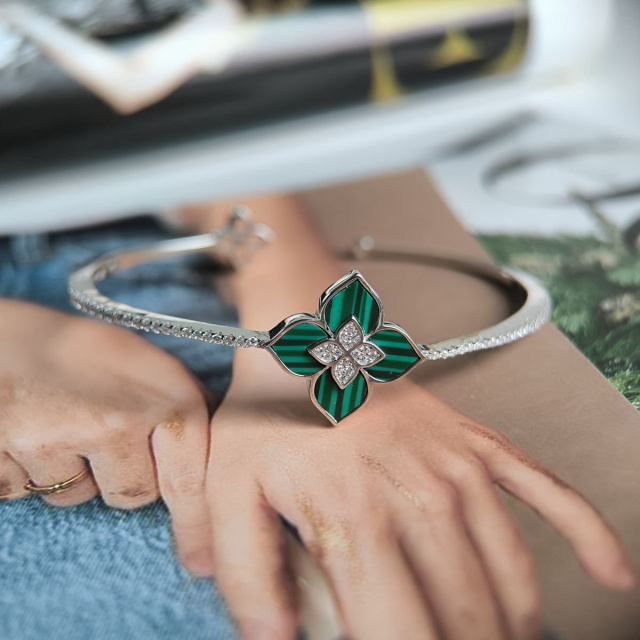 Родированный серебряный браслет 925 пробы с малахитом, фианитами. Родированные украшения дольше сохраняют свое первоначальное состояние, а именно...