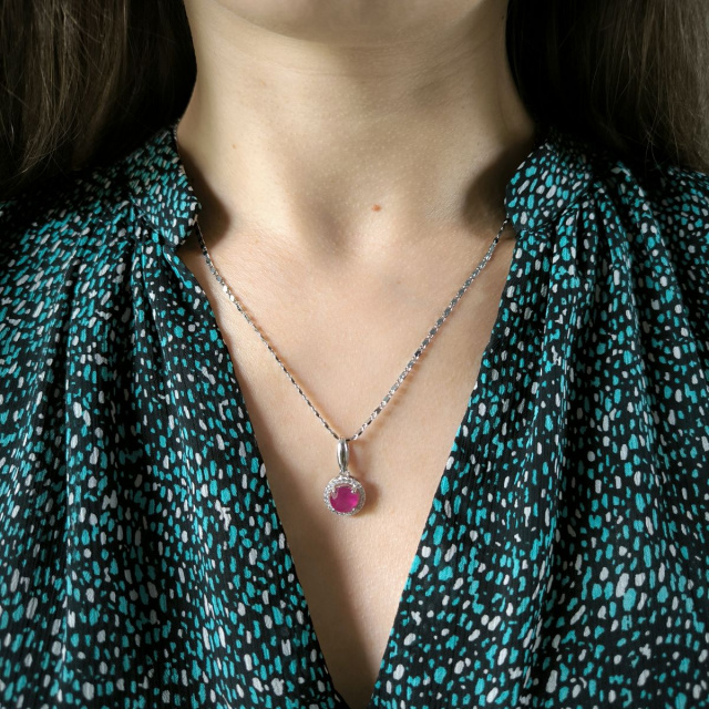 Родированная серебряная подвеска 925 пробы с натуральным рубином 3.187ct. Родированные украшения дольше сохраняют свое первоначальное состояние, а...