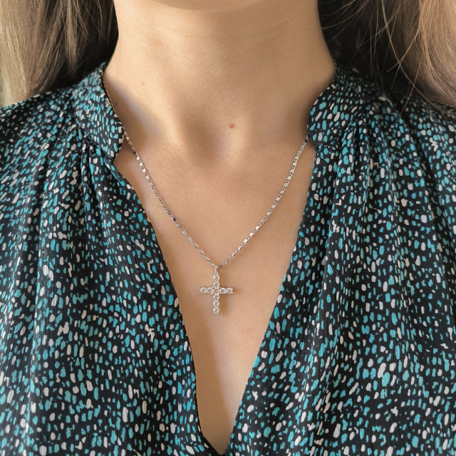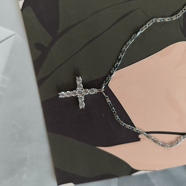 Родированный серебряный крестик 925 пробы с фианитами. Родированные украшения дольше сохраняют свое первоначальное состояние, а именно цвет и блеск