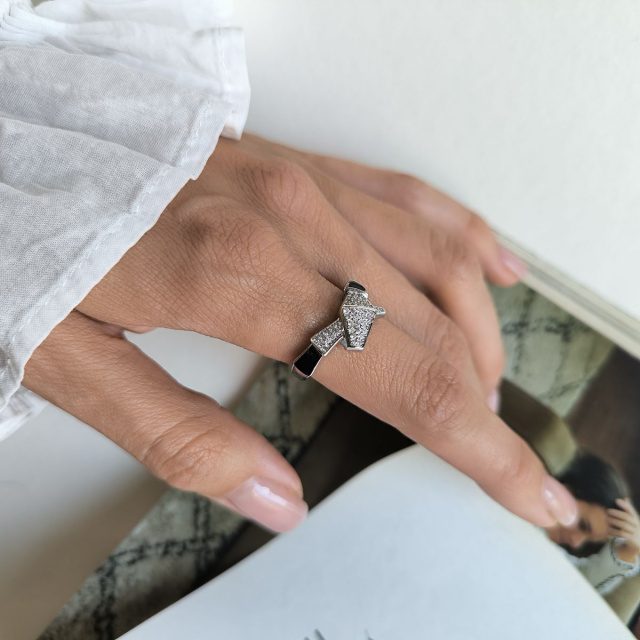 Родированное серебряное кольцо 925 пробы с фианитами, емаллю. Родированные украшения дольше сохраняют свое первоначальное состояние, а именно цвет и