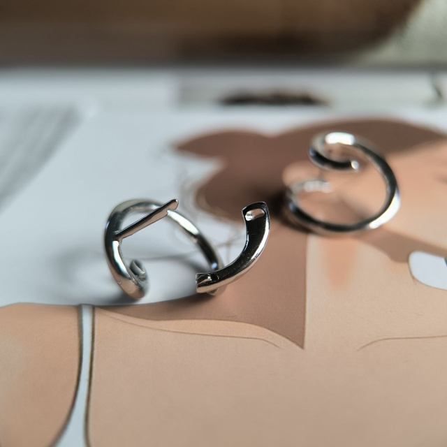 Родированые серебряные серьги 925 пробы без камней. Родированные украшения дольше сохраняют свое первоначальное состояние, а именно цвет и блеск металла. Все ювелирные изделия представленные на нашем сайте прошли внутренний контроль качества, а также контроль государственной пробирной службой Украины, на всех изделиях стоит соответствующая проба. К каждому ювелирному украшению прилагаются бирка указанием всех параметров.*Цвета изделий на сайте могут незначительно отличаться от реальных из-за особенностей цветопередачи экрана