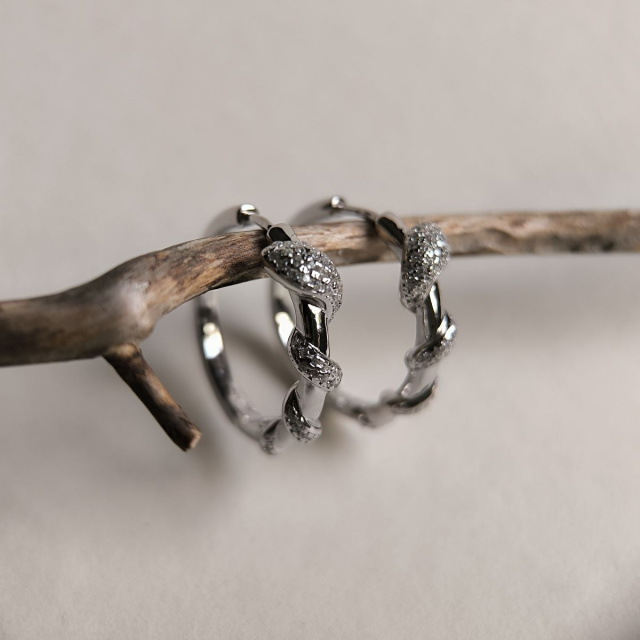 Родированые серебряные серьги 925 пробы с фианитами. Родированные украшения дольше сохраняют свое первоначальное состояние, а именно цвет и блеск металла. Все ювелирные изделия представленные на нашем сайте прошли внутренний контроль качества, а также контроль государственной пробирной службой Украины, на всех изделиях стоит соответствующая проба. К каждому ювелирному украшению прилагаются бирка с указанием всех параметров.*Цвета изделий на сайте могут незначительно отличаться от реальных из-за особенностей цветопередачи экрана