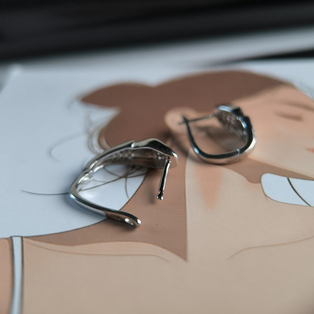 Родированые серебряные серьги 925 пробы с фианитами. Родированные украшения дольше сохраняют свое первоначальное состояние, а именно цвет и блеск металла. Все ювелирные изделия представленные на нашем сайте прошли внутренний контроль качества, а также контроль государственной пробирной службой Украины, на всех изделиях стоит соответствующая проба. К каждому ювелирному украшению прилагаются бирка с указанием всех параметров.*Цвета изделий на сайте могут незначительно отличаться от реальных из-за особенностей цветопередачи экрана