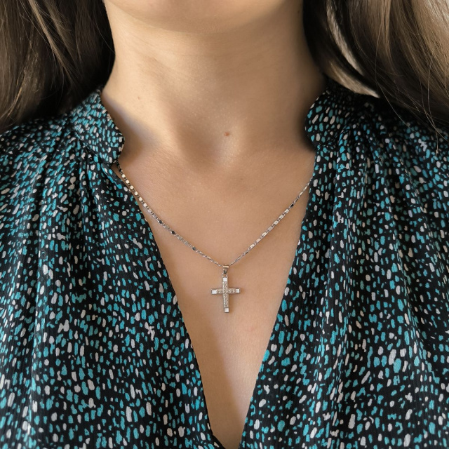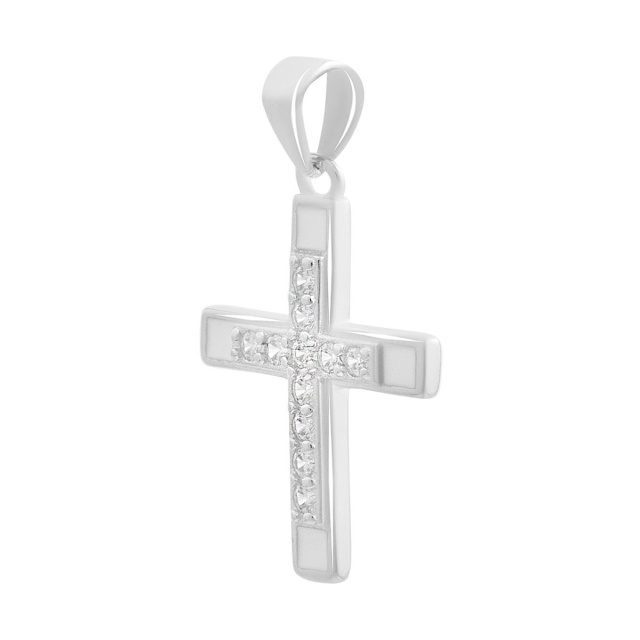 Родированный серебряный крестик 925 пробы с фианитами, емаллю. Родированные украшения дольше сохраняют свое первоначальное состояние, а именно цвет