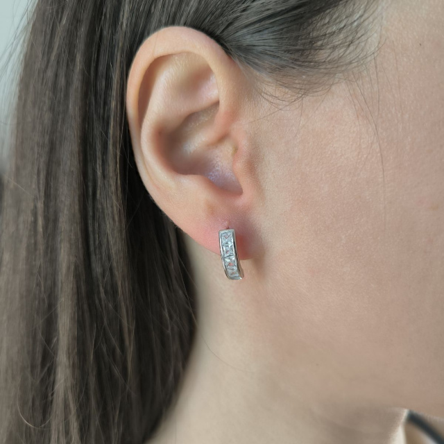 Родированые серебряные серьги 925 пробы с фианитами. Родированные украшения дольше сохраняют свое первоначальное состояние, а именно цвет и блеск металла. Все ювелирные изделия представленные на нашем сайте прошли внутренний контроль качества, а также контроль государственной пробирной службой Украины, на всех изделиях стоит соответствующая проба. К каждому ювелирному украшению прилагаются бирка с указанием всех параметров.*Цвета изделий на сайте могут незначительно отличаться от реальных из-за особенностей цветопередачи экрана