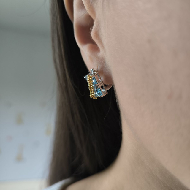 Родированые серебряные серьги 925 пробы с натуральным топазом, фианитами. Родированные украшения дольше сохраняют свое первоначальное состояние, а именно цвет и блеск металла. Все ювелирные изделия представленные на нашем сайте прошли внутренний контроль качества, а также контроль государственной пробирной службой Украины, на всех изделиях стоит соответствующая проба. К каждому ювелирному украшению прилагаются бирка с указанием всех параметров.*Цвета изделий на сайте могут незначительно отличаться от реальных из-за особенностей цветопередачи экрана