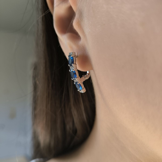 Родированые серебряные серьги 925 пробы с сапфиром nano 2.117ct, фианитами. Родированные украшения дольше сохраняют свое первоначальное состояние, а