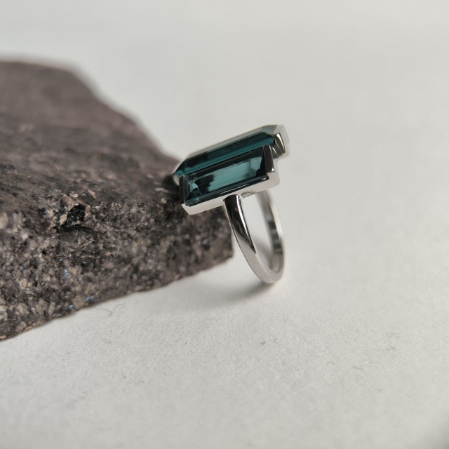 Родированное серебряное кольцо 925 пробы с топазом Лондон Блю 7.378ct. Родированные украшения дольше сохраняют свое первоначальное состояние, а...