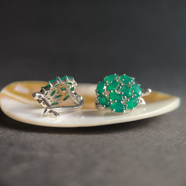 Родированые серебряные серьги 925 пробы с натуральным агатом 3.875ct. Родированные украшения дольше сохраняют свое первоначальное состояние, а...