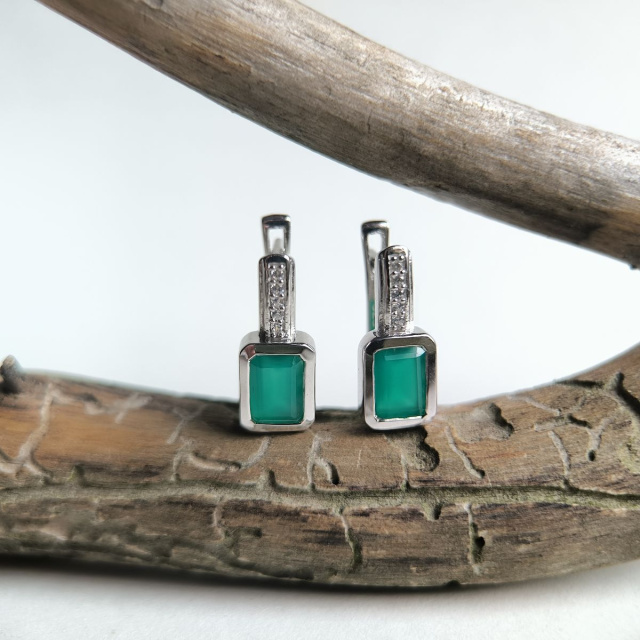 Родированые серебряные серьги 925 пробы с натуральным агатом 1.902ct. Родированные украшения дольше сохраняют свое первоначальное состояние, а...