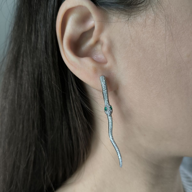 Родированые серебряные серьги 925 пробы с фианитами. Родированные украшения дольше сохраняют свое первоначальное состояние, а именно цвет и блеск металла. Все ювелирные изделия представленные на нашем сайте прошли внутренний контроль качества, а также контроль государственной пробирной службой Украины, на всех изделиях стоит соответствующая проба. К каждому ювелирному украшению прилагаются бирка с указанием всех параметров.*Цвета изделий на сайте могут незначительно отличаться от реальных из-за особенностей цветопередачи экрана