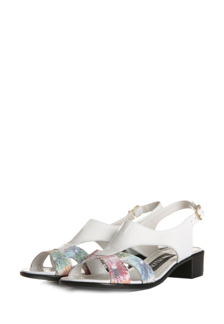 Білі шкіряні класичні босоніжки на низькому підборі v7-210-09b, Київ