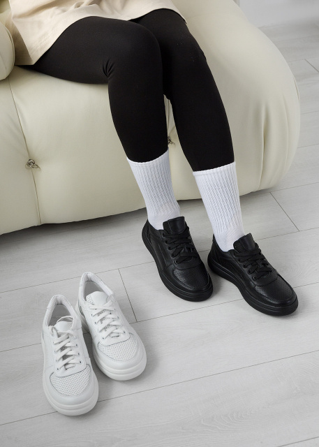 Чорні шкіряні жіночі кеди з перфорацією v7-e7-083, Київ