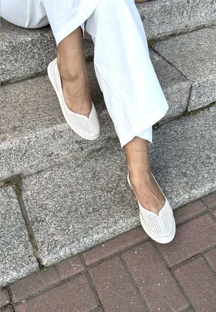 Бежеві балетки шкіряні перфорація v7-a7-12be, Київ