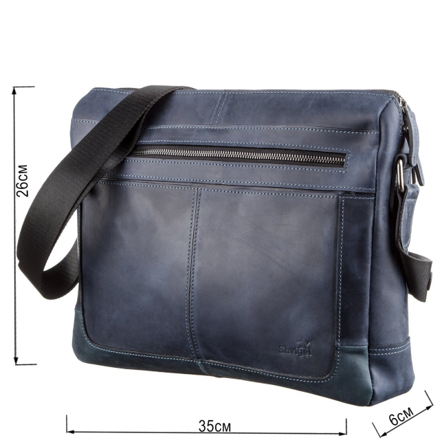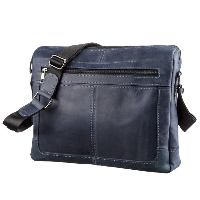 Ділова чоловіча шкіряна сумка на плече 711249 Синя, Київ
