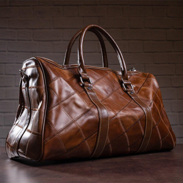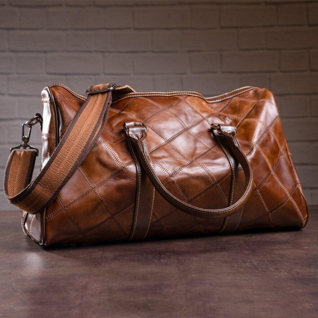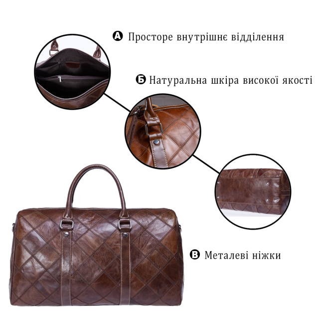 - текстильний ремінець на плече (знімається); Дуже вмістка і зручна дорожня сумка. Відмінно підійде в зал. На лицевій стороні сумка прошита коричневою ниткою. Аксесуар доповнено фурнітурою сріблястого кольору з міцного металу. Внизу сумки є металеві ніжки. Сумку можна носити як в руках, є 2 шкіряні ручки, так і на плечі за допомогою ременя. Ідеальний варіант для стильних чоловіків і жінок. Сумка буде прекрасним подарунком для близької людини. Модель упакована в тканинної чохол. ОПЛАТА та ДОСТАВКА : накладний платіж з передоплатою 200 грн.Терміни відправлення : 1-3 робочих днів