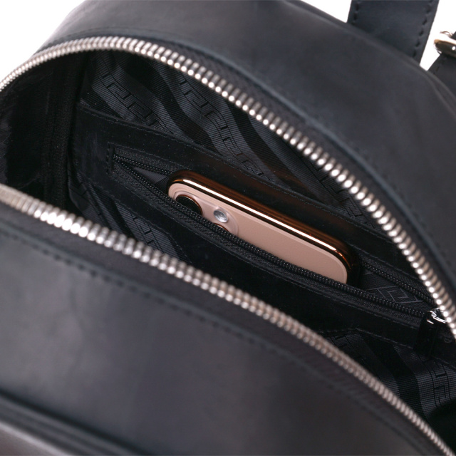 - шкіряні регульовані шлейки та ручка для перенесення в руці. Чудовий жіночий рюкзак у вінтажному стилі для повсякденного використання від українського виробника. Виконано цю модель з натуральної висококласної шкіри з відмінними характеристиками. Колір виробу - універсальний чорний, гладка фактура матова. Шлейки регулюються по довжині і виконані з натуральної шкіри. ОПЛАТА та ДОСТАВКА : накладний платіж з передоплатою 200 грн.Терміни відправлення : 1-3 робочих днів