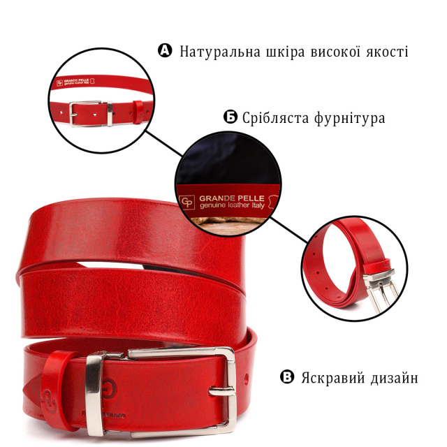 Якісний жіночий ремінь із натуральної шкіри 721456 Червоний, Київ