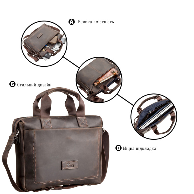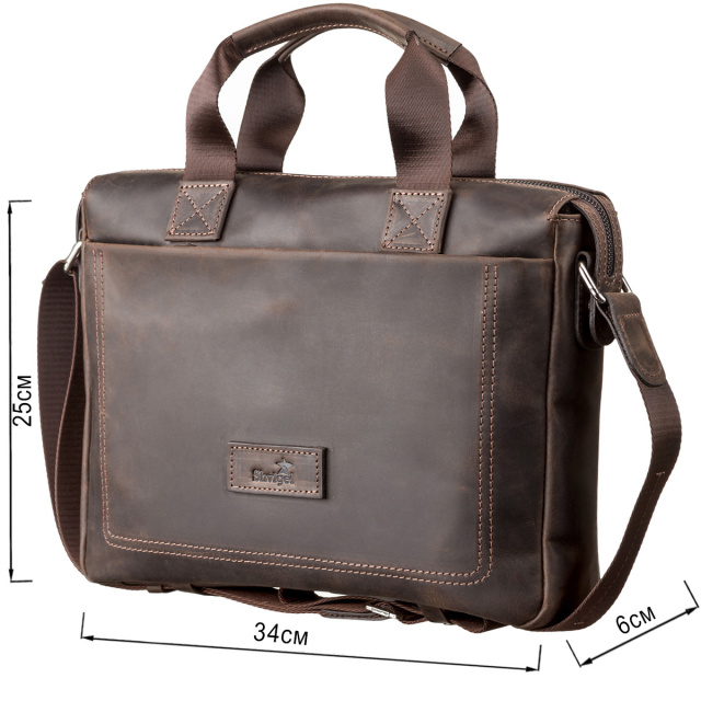 - аксесуар упакований в пилозахисний чохол. Сучасна коричнева чоловіча сумка, з натуральної вінтажної шкіри, формату-А4, з двома зручними ручками для повсякденного використання,