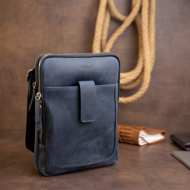 - незнімний текстильний ремінець. Практична сумка в матовій вінтажній шкірі на два відділення. Модель в оригінальному синьому кольорі. Для чоловіків, які завжди прагнуть бути в тренді. Виробництво - Україна. Вінтажна шкіра має дуже розкішний дизайн і користується особливою популярністю за свій "ефект старовини". Згодом на цій шкірі з'являються подряпини і потертості, що виглядає дуже вінтажно. Чоловічий планшет - ідеальний варіант сумки на кожен день по дизайну, функціональності і розмірам. У дизайні моделі немає ніяких зайвих деталей при цьому сумка виглядає дуже модно і стильно. Сумка виконана з урахуванням всіх модних тенденцій. На лицьовій стороні моделі тиснення у вигляді логотипу бренду. Аксесуар доповнено текстильним незнімним ремінцем. Шкіряна сумка - кращий подарунок для будь-якого чоловіка. Замовляйте дану модель як для себе, так і на подарунок. ОПЛАТА та ДОСТАВКА : накладний платіж з передоплатою 200 грн.Терміни відправлення : 1-3 робочих днів