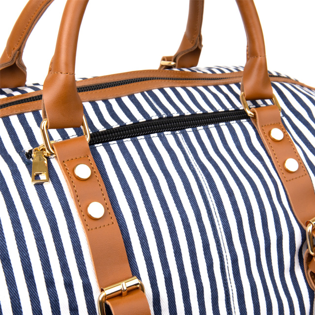 Дорожня текстильна сумка з дизайном в смужку і вставкою зі шкірозамінника. Знизу сумки металеві вставки, які захищають сумку від зносу знизу. Сумка дуже містка і чудово підійде в дорогу. Сумку ви можете носити як через плече так і в руках. Велика дорожня сумка підійде для ваших подорожей і відпочинку. Текстильна сумка - бюджетне рішення для вашого відпочинку. ОПЛАТА та ДОСТАВКА : накладний платіж з передоплатою 200 грн.Терміни відправлення : 1-3 робочих днів