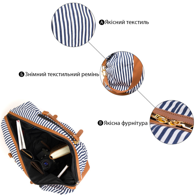 Дорожня сумка текстильна жіноча в смужку 720667 Біла, Київ