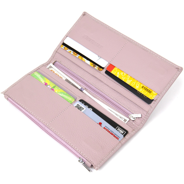 Всім, хто шукає гарний і функціональний жіночий гаманець благородного блідо-лілового кольору, необхідно звернути свою увагу на дану модель. Цей шкіряний виріб має достатню кількість відділень для купюр і карток, а також монетницю на блискавці на тильній стороні, що дуже зручно. Гаманець упакований в фірмову тверду білу коробку, тому стане не тільки відмінним придбанням для вас, але і хорошим подарунком для близької людини. ОПЛАТА та ДОСТАВКА : накладний платіж з передоплатою 200 грн.Терміни відправлення : 1-3 робочих днів