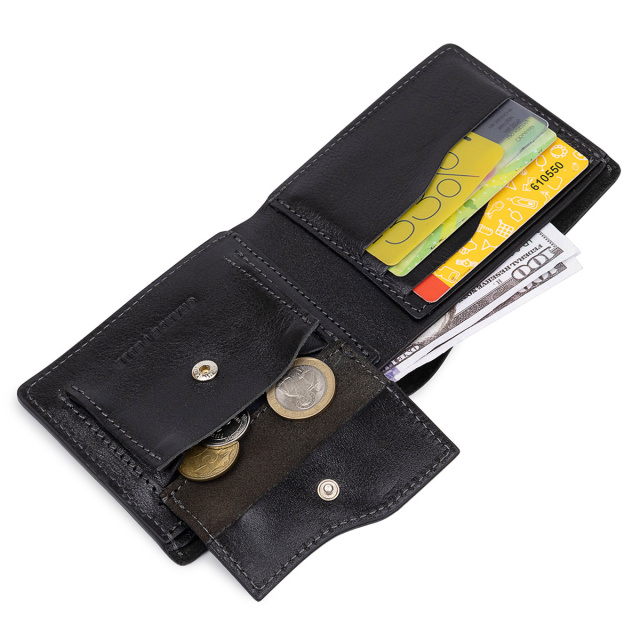 - монетниця на кнопці; Класичне чоловіче портмоне невеликого розміру в глянцевій гладкій фактурі. Матеріал виготовлення - натуральна зносостійка шкіра високої якості. Всередині є відділення для купюр, слоти для пластикових карт і візиток, а також монетниця на кнопці. Упаковано виріб в фірмовий ущільнений чохол. ОПЛАТА та ДОСТАВКА : накладний платіж з передоплатою 200 грн.Терміни відправлення : 1-3 робочих днів