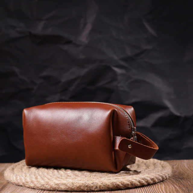 Чоловіча косметичка середнього розміру із гладкої шкіри на блискавці Серце 716765 Світло-коричнева, Київ