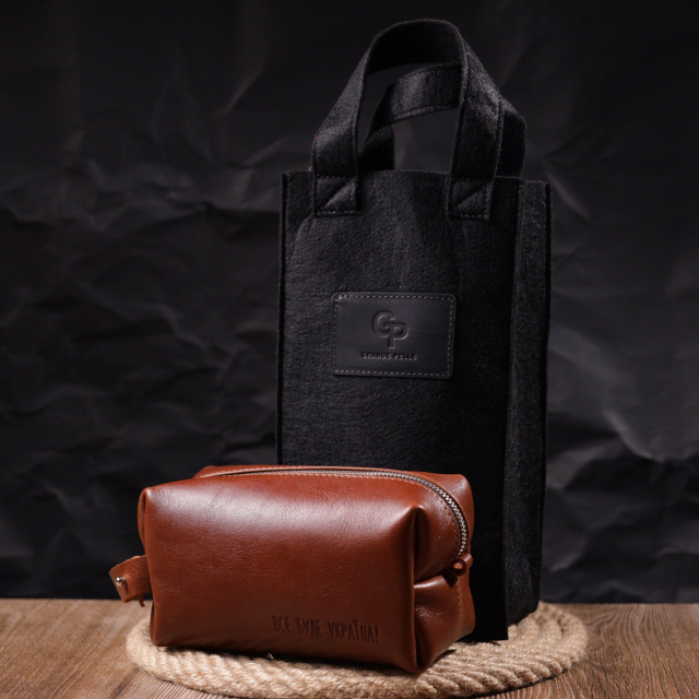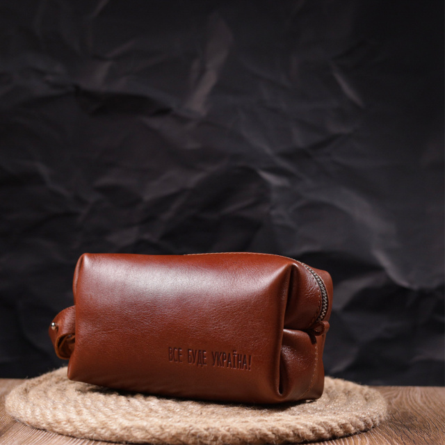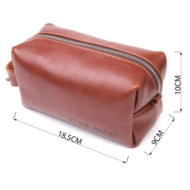 - фурнітура срібного кольору; Місткий чоловічий несесер, середнього розміру в гарній гладкій шкірі, з патріотичним тисненням на лицьовій стороні “Все буде Україна”. Має просторе відділення, в яке помістяться всі необхідні речі. Надійна фурнітура представлена у срібному кольорі. Для зручного перенесення аксесуарів є спеціальна ручка на бічній стінці. Запакована ця косметичка в красиву сумку фетрову. Вироби зі шкіри – чудова ідея подарунка на будь-які свята. ОПЛАТА та ДОСТАВКА : накладний платіж з передоплатою 200 грн.Терміни відправлення : 1-3 робочих днів