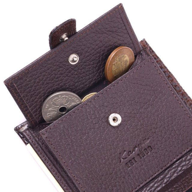 Компактний чоловічий гаманець із натуральної шкіри з тисненням під крокодила 721386 Коричневий, Київ