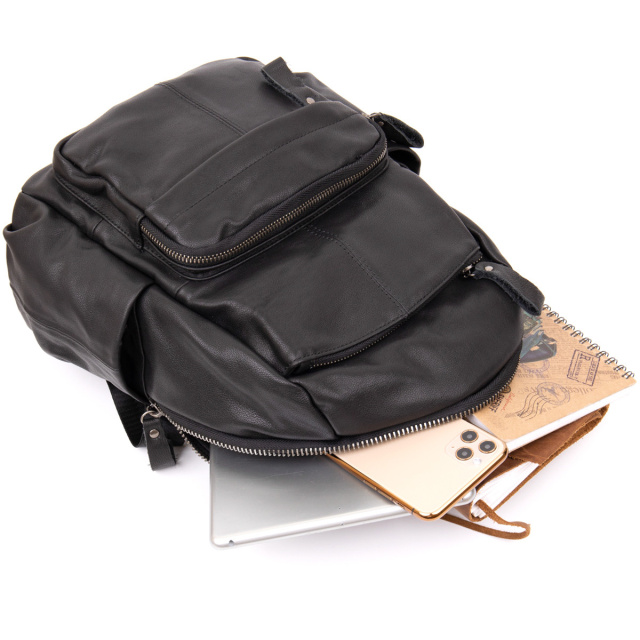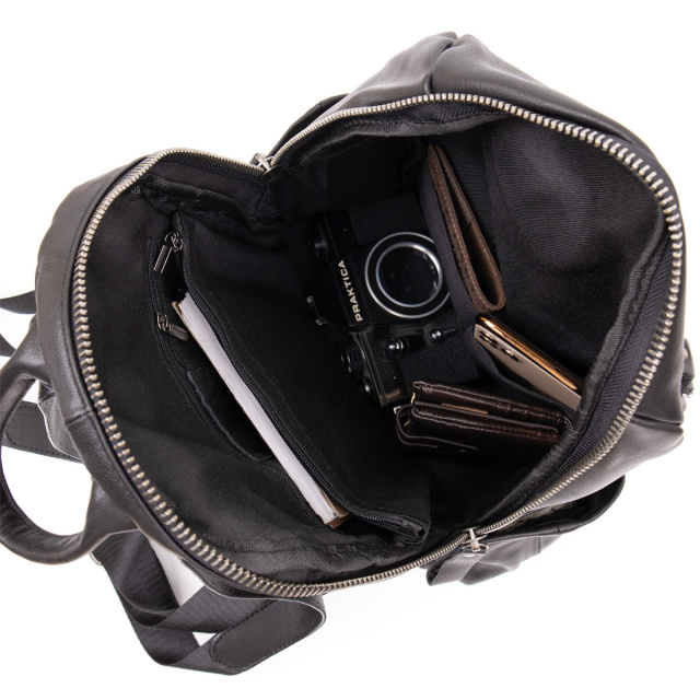Рюкзак міський в гладку шкіру 720411 Чорний, Київ