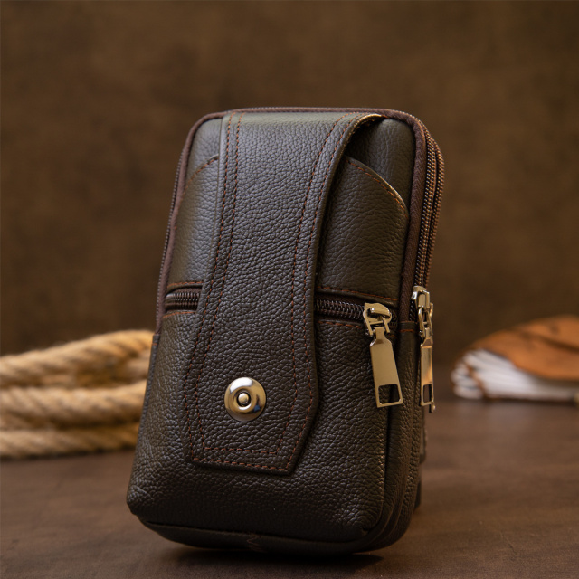 Сумка чоловіча на пояс на два відділення з хлястиком 720451 Коричнева, Київ