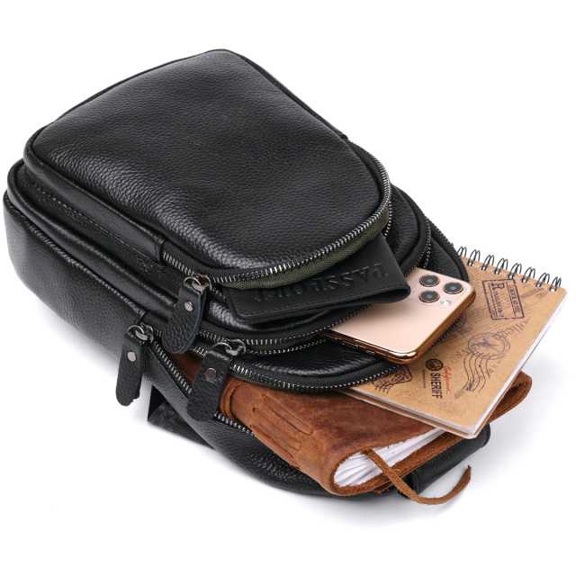 Компактна шкіряна чоловіча сумка через плече 720684 Чорний, Київ
