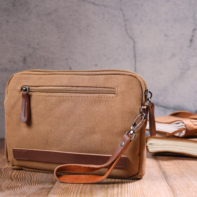 - шкіряний знімний кистьовий ремінь. Практична текстильна барсетка в коричневому кольорі має класичний і зручний дизайн з практичним функціоналом. Аксесуар має одне основне відділення, дві внутрішні кишені, одна з яких на блискавці, ущільнена одна стінка, знімний кистьовий ремінь. У барсетку поміститься чимало речей, а наявність кишень допоможе вам ідеально їх розкласти. У поєднанні з якісною фурнітурою та міцною підкладкою барсетка прослужить Вам не один рік. Виріб стане чудовим подарунком для будь-якого чоловіка. ОПЛАТА та ДОСТАВКА : накладний платіж з передоплатою 200 грн.Терміни відправлення : 1-3 робочих днів