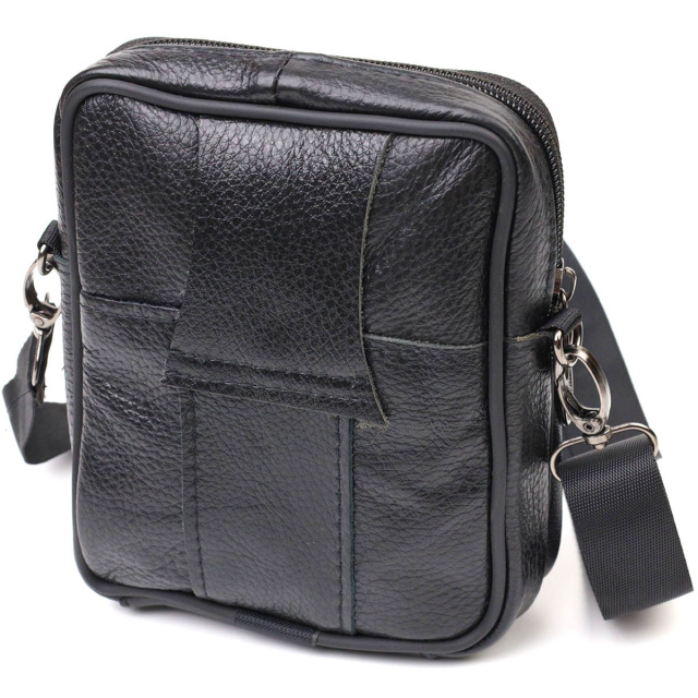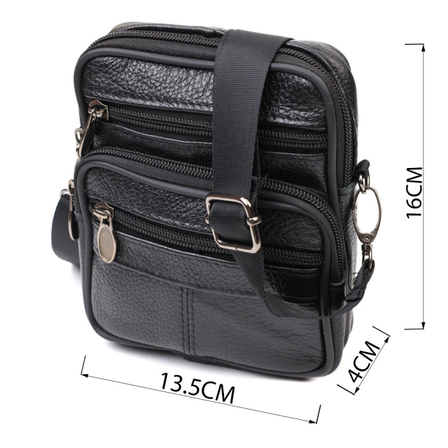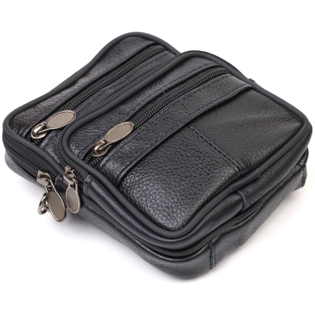 Зручна чоловіча сумка на пояс із натуральної шкіри 721483 Чорна, Київ