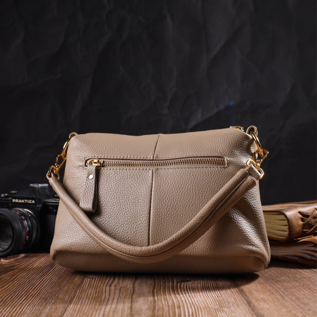 Практична жіноча сумка через плече з натуральної шкіри 722084 Бежева, Київ