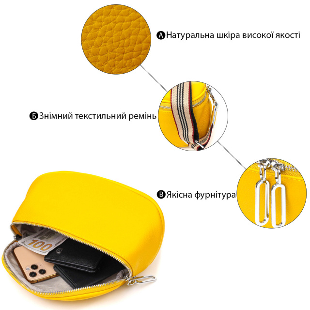 Яскрава жіноча сумка через плече з натуральної шкіри 722116 Жовта, Київ