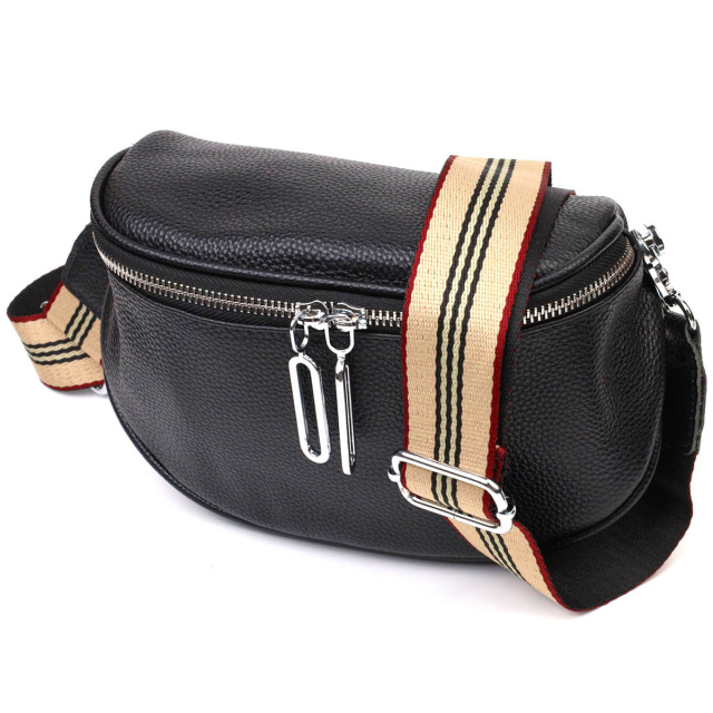 Оригінальна жіноча сумка через плече з натуральної шкіри 722122 Чорна, Київ