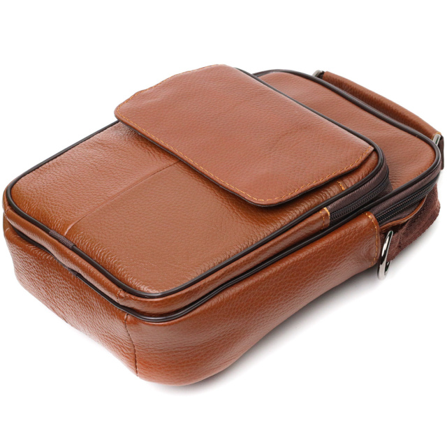 Зручний чоловічий месенджер із натуральної шкіри 721951 Світло-коричневий, Київ