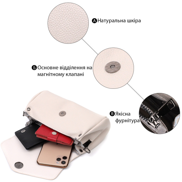 Шкіряна сумка з трикутним клапаном 722255 Біла, Київ