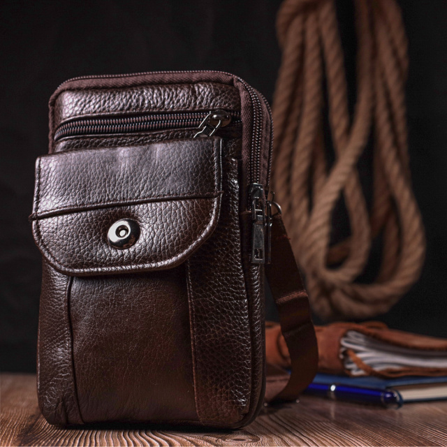 Компактна чоловіча сумка на пояс із натуральної шкіри 722141 Коричневий, Київ