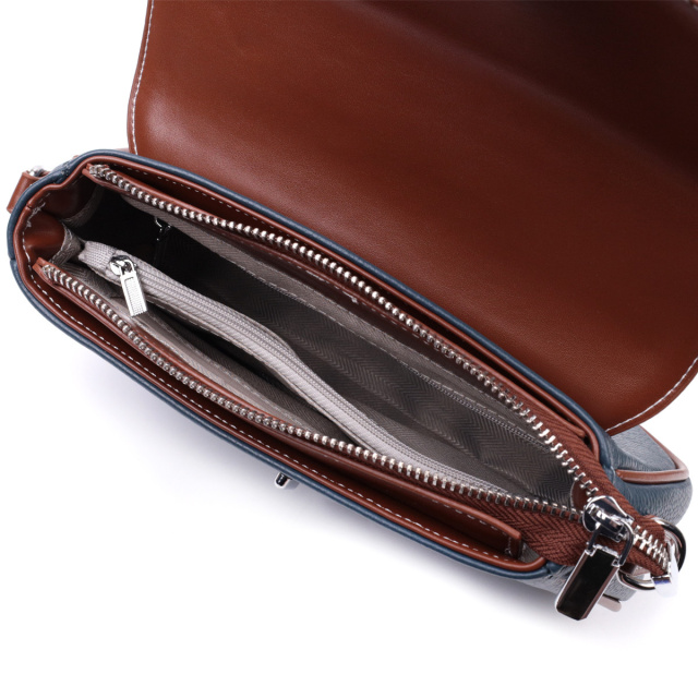 - знімний шкіряний ремінь. Практична каркасна сумка жіноча з натуральної шкіри. У виробі використано шкіру синього та коричневого кольору. Притягує погляд у виробі фактурний клапан із тисненням під змію та витончена механічна клямка. Аксесуар складається з основного відділення, кишені-перегородки на блискавці, потайної кишені на блискавці та кишені відкритого типу, а також ще однієї кишені зовні, на тильній стороні. Носити сумку можна в руці, під рукою, на плечі і через плече, для цього є шкіряний ремінь, що знімається. В аксесуарі використано якісну фурнітуру кольору срібла. Універсальний варіант сумки на вечір, на щодня, а також буде відмінно поєднуватиметься з діловим стилем. ОПЛАТА та ДОСТАВКА : накладний платіж з передоплатою 200 грн.Терміни відправлення : 1-3 робочих днів
