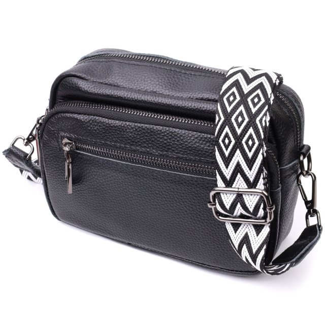 Сумка жіноча в класичному кольорі з накладною кишенею з натуральної шкіри 722640 Чорна, Київ