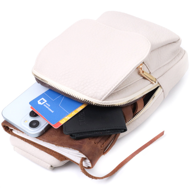 - текстильний плечовий регульований ремінець. Топова слінг сумка для жінок із зернистої екошкіри в стильному молочному кольорі. Ця модель складається з одного основного відділення, яке закривається на блискавку і в якому знаходиться кишеня на блискавці і чотири кишені для кредитних карток усередині, а також двох кишень зовні та одного отвору для кабелю або навушників, що дуже зручно в сучасному світі. Акцентом даної моделі є зручний регульований плечовий ремінець у етнічному стилі, що дуже модно вже кілька сезонів. Екошкіра - високоякісна альтернатива натуральному матеріалу, яка дуже стійка до тертя, до низьких температур, відмінно носиться на відміну від інших штучних матеріалів, а також має гіпоалергенний склад на відміну від натуральної шкіри. ОПЛАТА та ДОСТАВКА : накладний платіж з передоплатою 200 грн.Терміни відправлення : 1-3 робочих днів