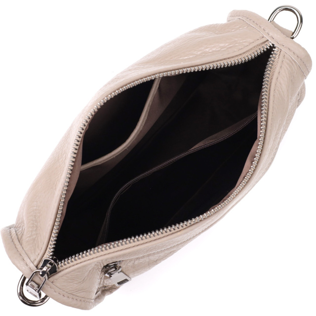 - знімні 2 ремінці шкіряний та текстильний. Елегантна шкіряна сумка темно-сірого кольору – універсальний аксесуар з практичним дизайном та стриманим, благородним відтінком. Виконана з натуральної шкіри високої якості, вона відрізняється міцністю, довговічністю та стилем поза часом. Сумка має одне основне відділення, що закривається на блискавку. Усередині — дві функціональні кишені: одна потайна на блискавці для надійного зберігання дрібниць і одна відкрита — для швидкого доступу до потрібних речей. На тильній стороні передбачена додаткова кишеня на блискавці, яку зручно використовувати для ключів, телефону або проїзного. Фурнітура кольору срібла підкреслює холодний тон шкіри, створюючи акуратний та стильний контраст. У комплект входять два знімні ремінці - шкіряний і текстильний, що дозволяють носити сумку в різних варіантах: на плечі, через плече або в руці. Темно-сіра шкіряна сумка - ідеальний вибір для тих, хто цінує стриману елегантність, функціональність та комфорт в одному аксесуарі. ОПЛАТА та ДОСТАВКА : накладний платіж з передоплатою 200 грн.Терміни відправлення : 1-3 робочих днів