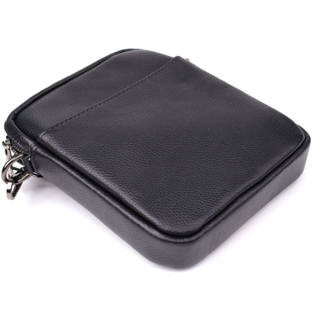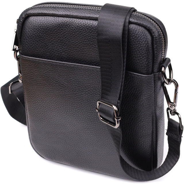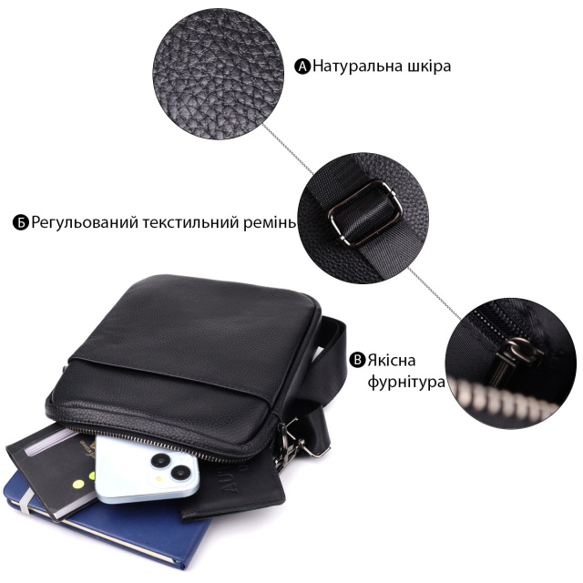 Компактна чоловіча сумка на плече з натуральної шкіри 723021 Чорний, Київ
